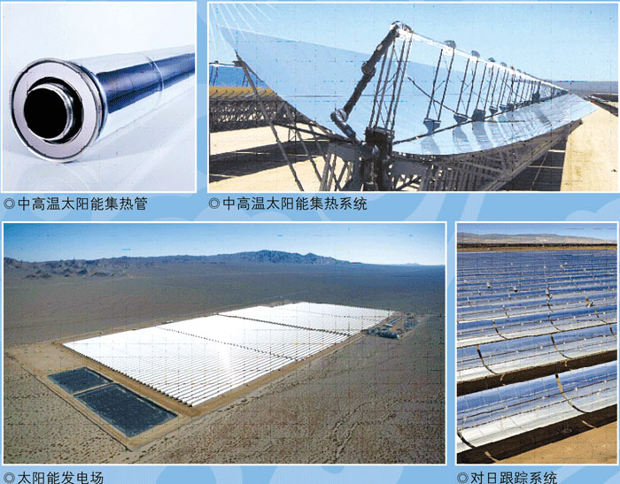 槽式太陽能熱發電系統的核心部分就是聚光集熱系統,而聚光集熱系統的核心部件就是中高溫太陽能真空集熱管。 |