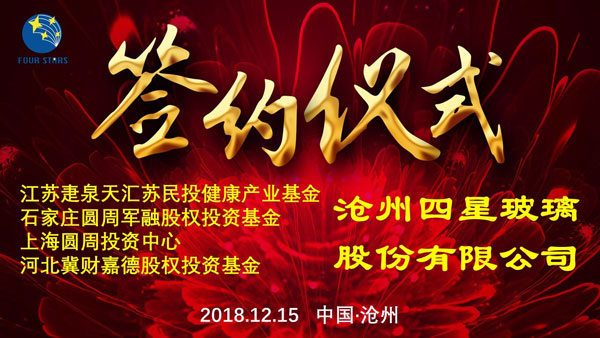 今天是一個特殊的日子!是我們四星玻璃發展史上的又一個新的里程碑,是我們公司成立26年來的又一次重大事記! 近年來,四星玻璃不斷完善和提升經營管理質量和管理水平,持續加大國內外市場的開拓力度,營業收入逐年增加,利稅貢獻連年上漲,憑借特有的技術優勢和廣闊的發展前景獲得了眾多投資者的認可和青睞。公司通過與投資機構進行廣泛接觸、深入洽談和細致調研,本著合作共贏、互利互惠的原則與四家優質投資機構達成一致意見,促成了本次簽約。